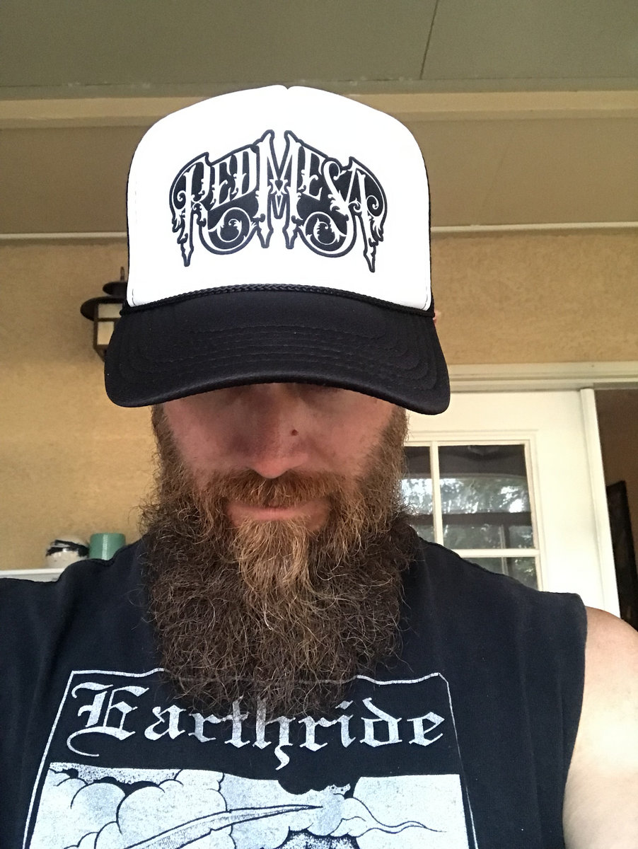 Official RED MESA Trucker Hat. White foam front/black mesh back.